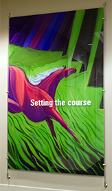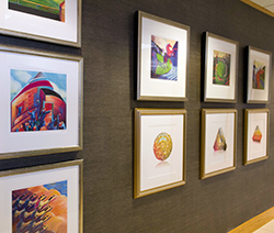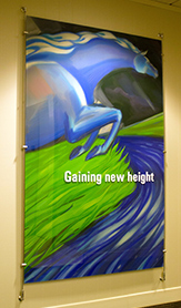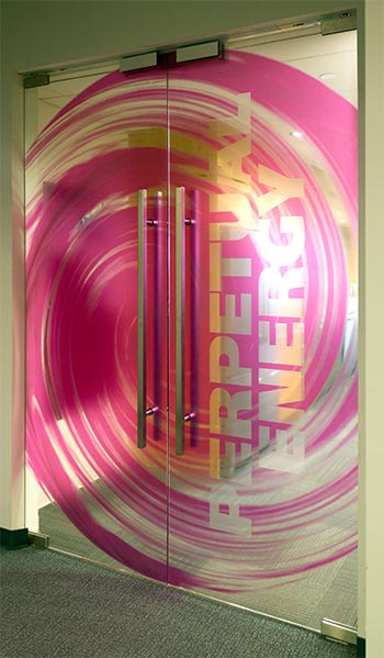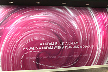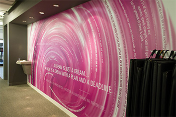 Brand motifs created for Perpetual lent themselves well to interpretation throughout the interior spaces. In the fitness center we designed a mural in which we incorporated some of the employees’ favorite inspirational quotes. The mural was so well-loved that we created a tote bag for employees, and an additional 5,000 totes were donated to the Calgary Food Bank for hamper use.