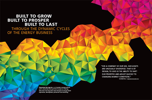 We have enjoyed over a decade of interesting and immensely satisfying work with this exciting company – first as Paramount Energy Trust – then working through their rebranding to become Perpetual Energy. In our first project with this client, we chose a wild horse to evoke their personality – that powerful image was used for a full ten years before the name change.